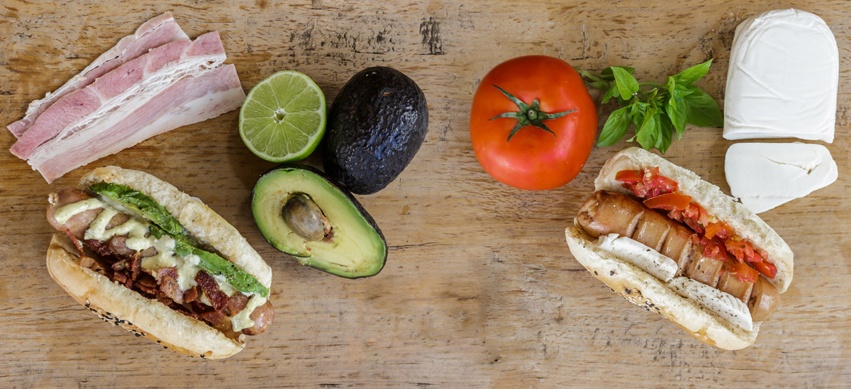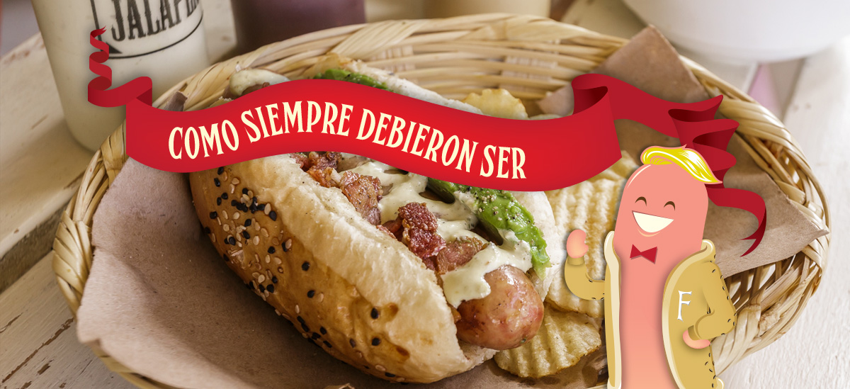 El hot-dog gourmet mexicano con aguacate, tocino crujiente y mayonesa de jalapeño.