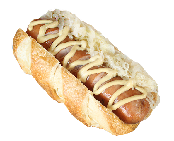 Pan pretzel, salchicha Rindswurst (carne 100% de res).